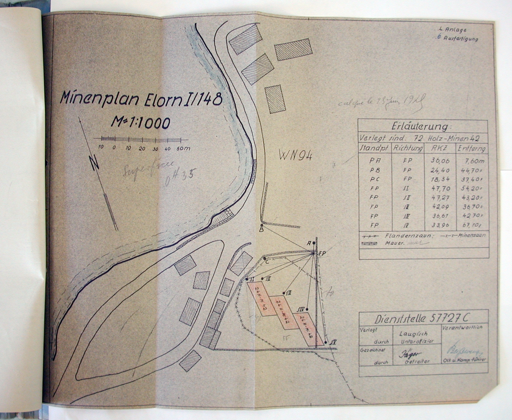 Plan de détail du champ de mines Elorn I/148 posé le 31 mars 1944 (2./Pi./Btl. 266 : 57727C)-
