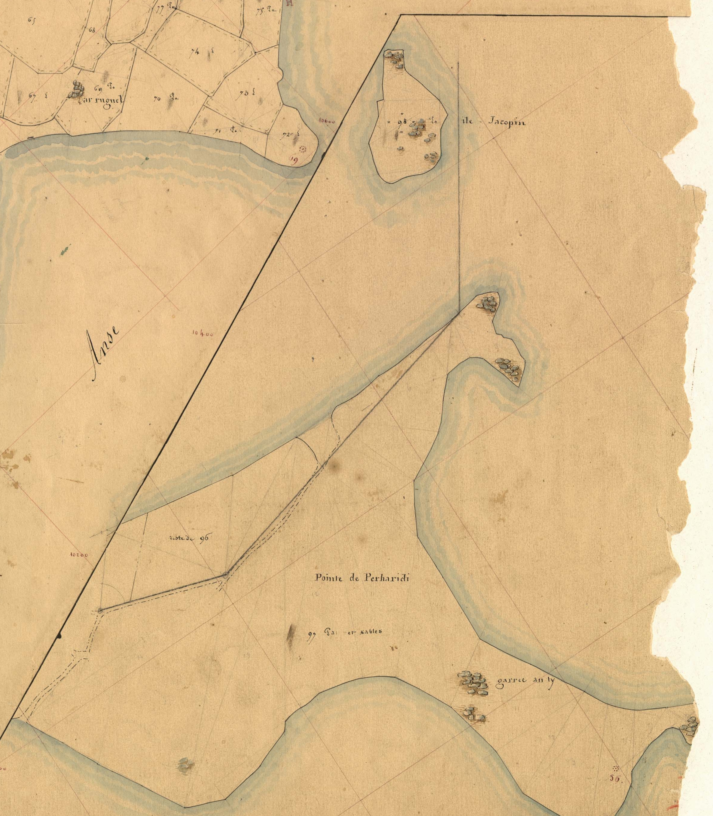 Extrait du cadastre parcellaire de Roscoff : extrémité de la Pointe de Perharidi et Île Jacopin, 1846Immatriculation