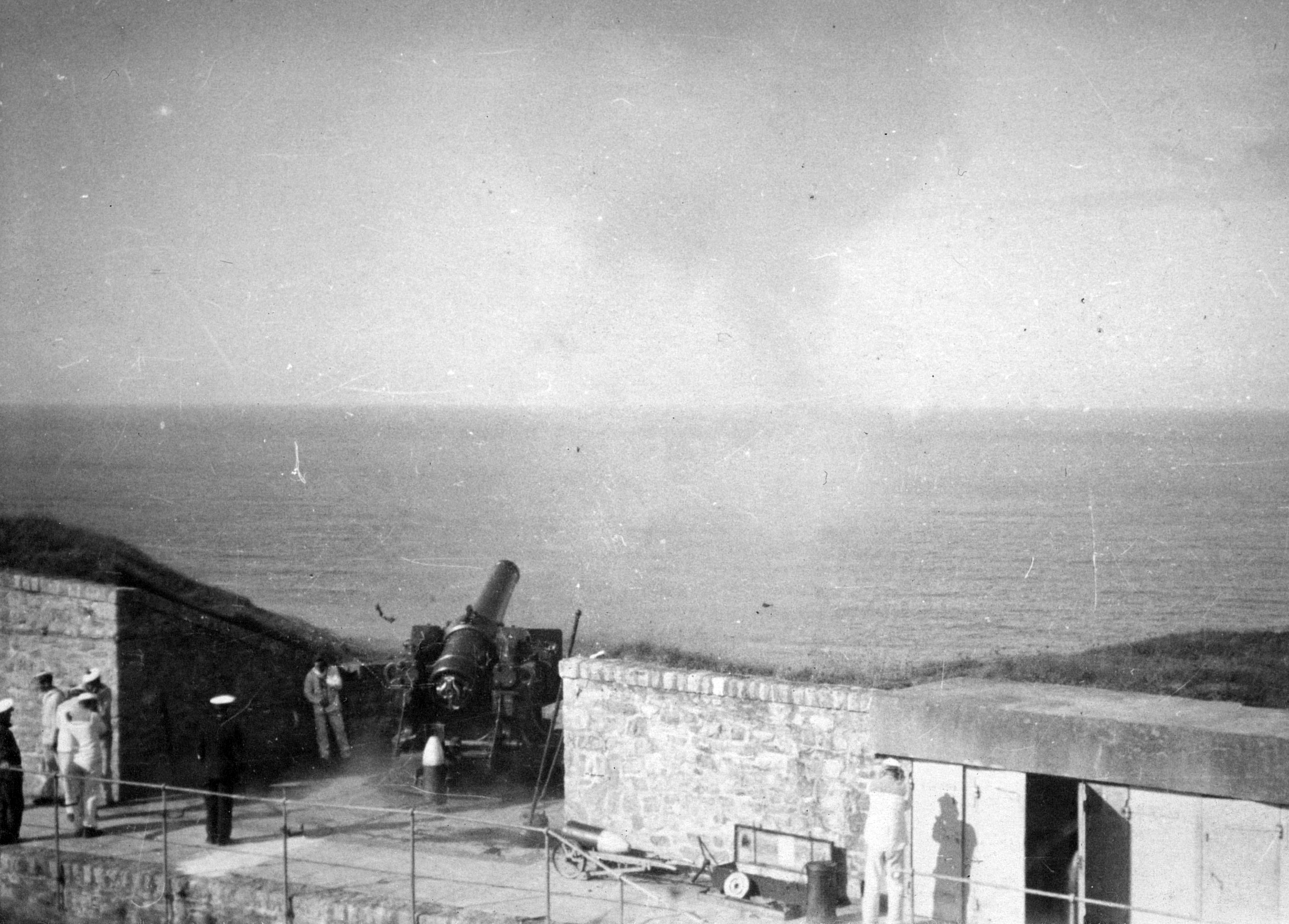 Vue d'un exercice de tir au mortier de 270 mm en juillet 1934 (collection : Archives départementales du Finistère)Immatriculation