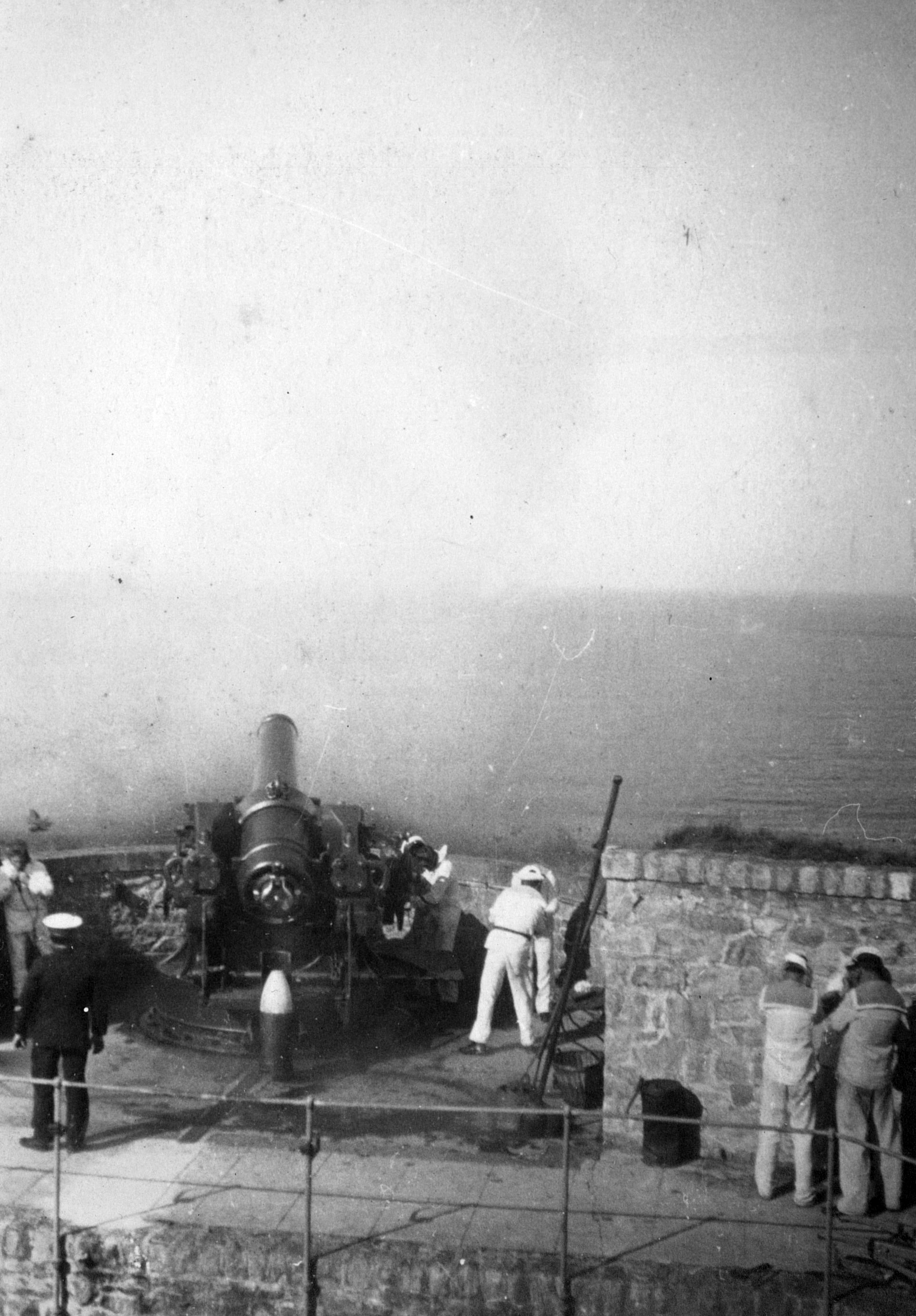 Vue d'un exercice de tir au mortier de 270 mm en juillet 1934 (collection : Archives départementales du Finistère)Immatriculation