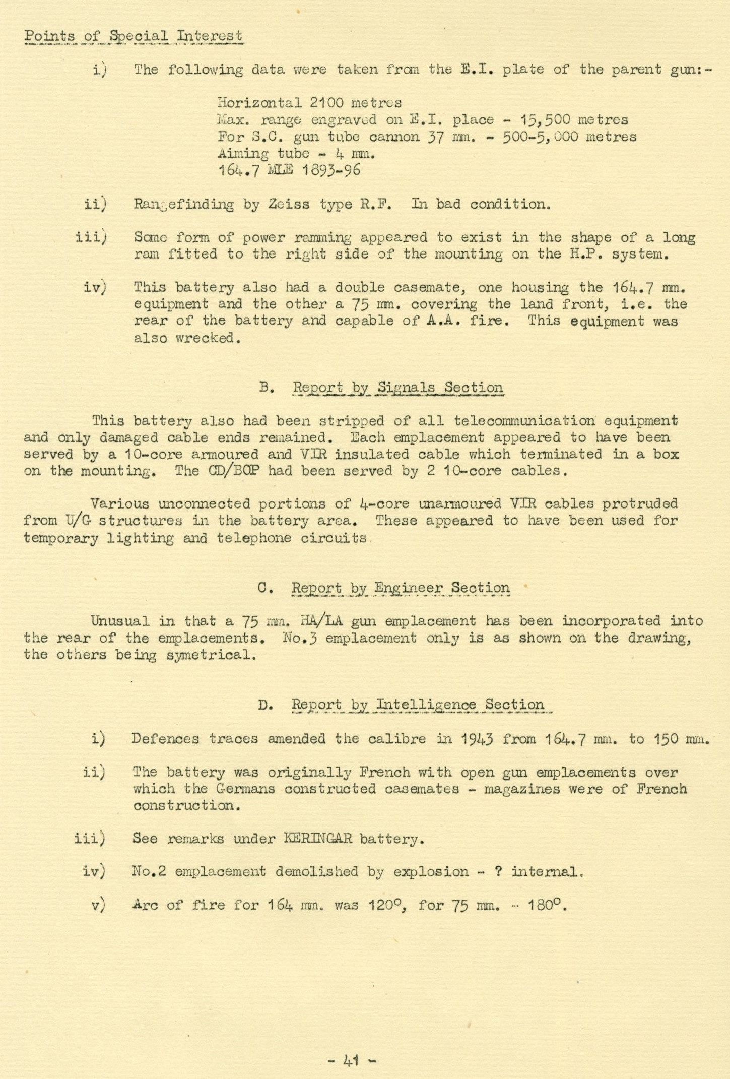 Extrait du rapport "defences report No 1" réalisé après-guerre par les Forces armées britanniques, p. 41Immatriculation