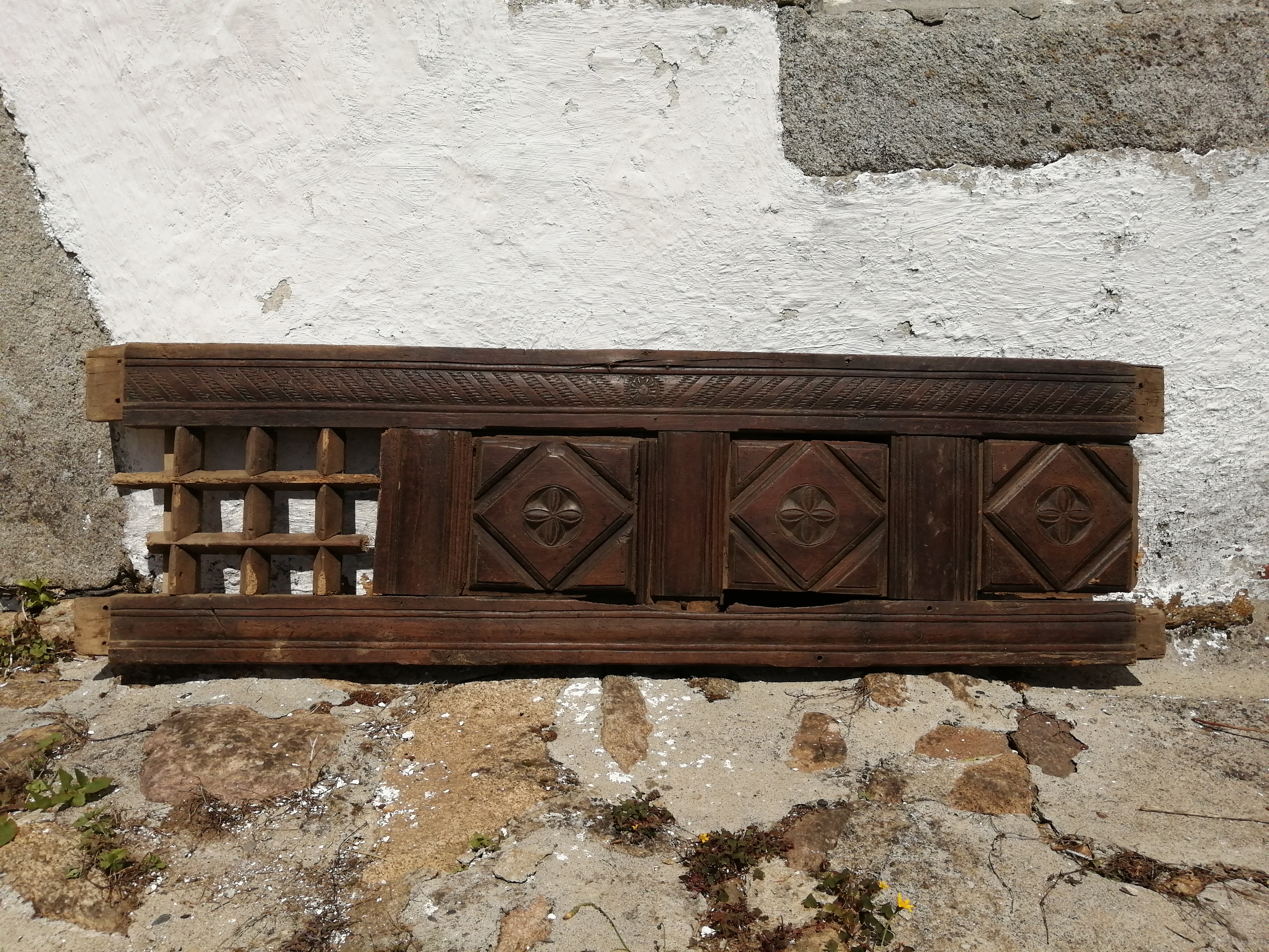 Drustuilh 1 daté 1812, éléments. Détail de la traverse médiane avec panneau ajouré.Immatriculation