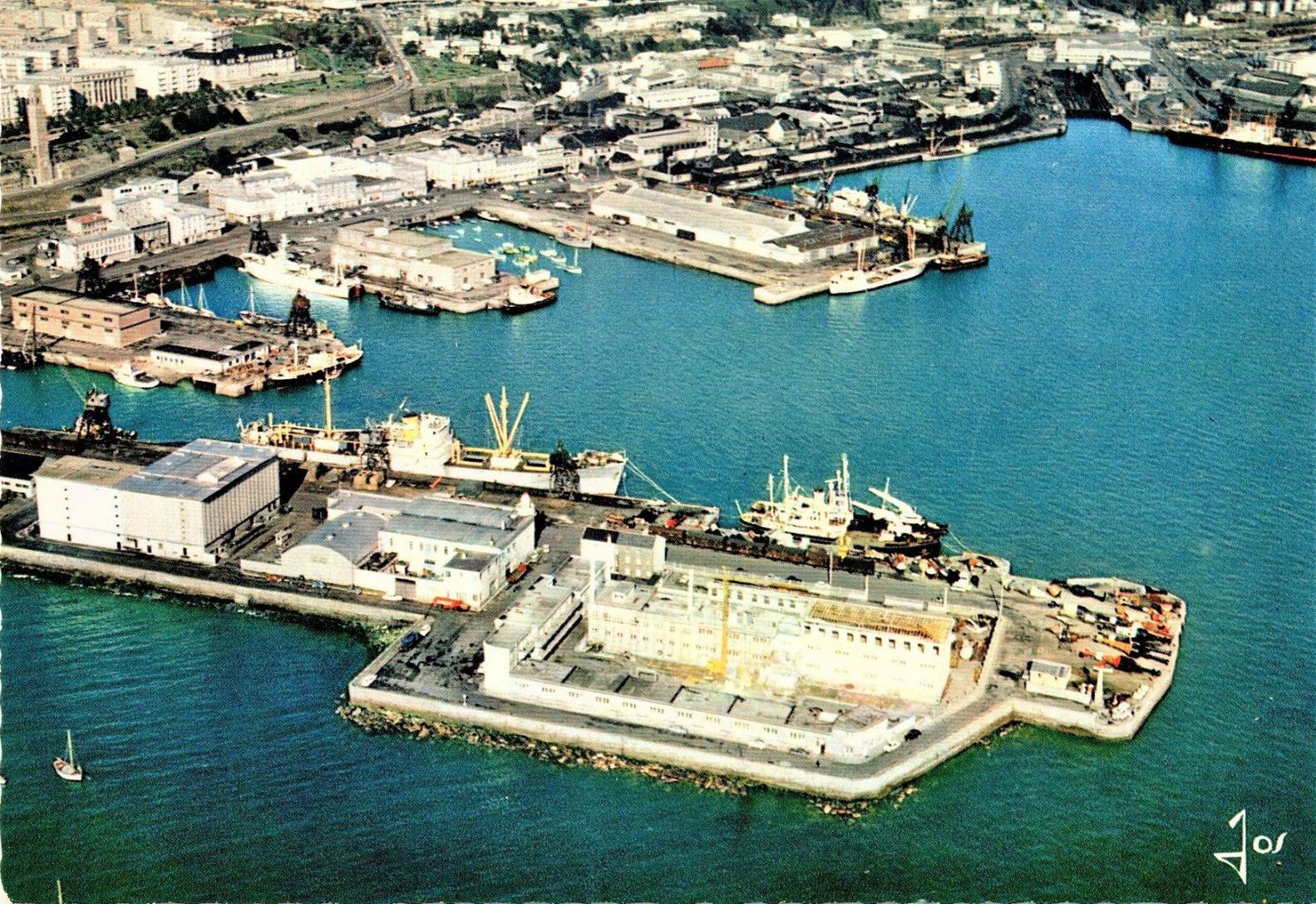 Vue aérienne du site des Phares et Balises de Brest, carte postale, édition JOS, début années 1960Immatriculation
