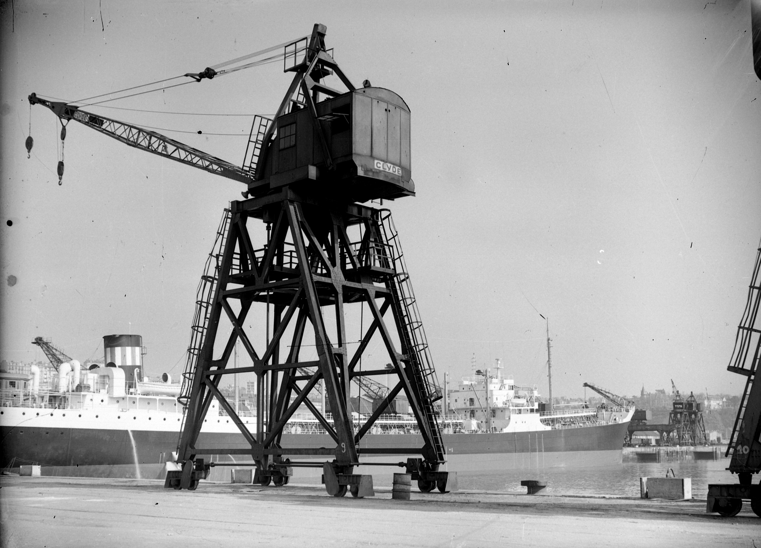 Grue au 5e bassin, navires à quai. Ed. RémaImmatriculation