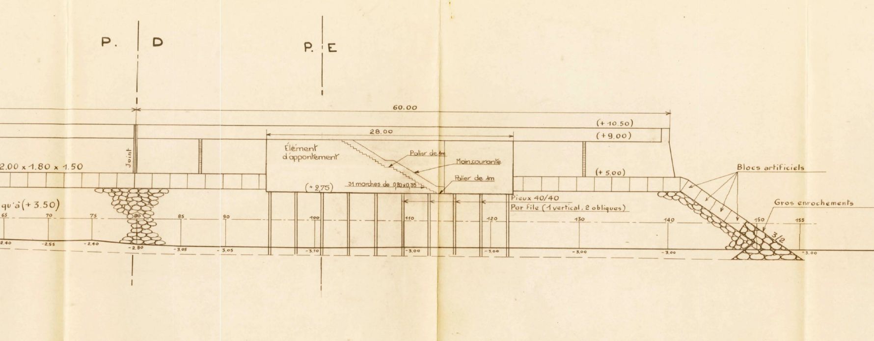 Elévation du prolongement de l'ouvrage (Ponts-et-Chaussées, dressé par l'ingénieur B. Félix, 30/06/64 ; projet)Immatriculation