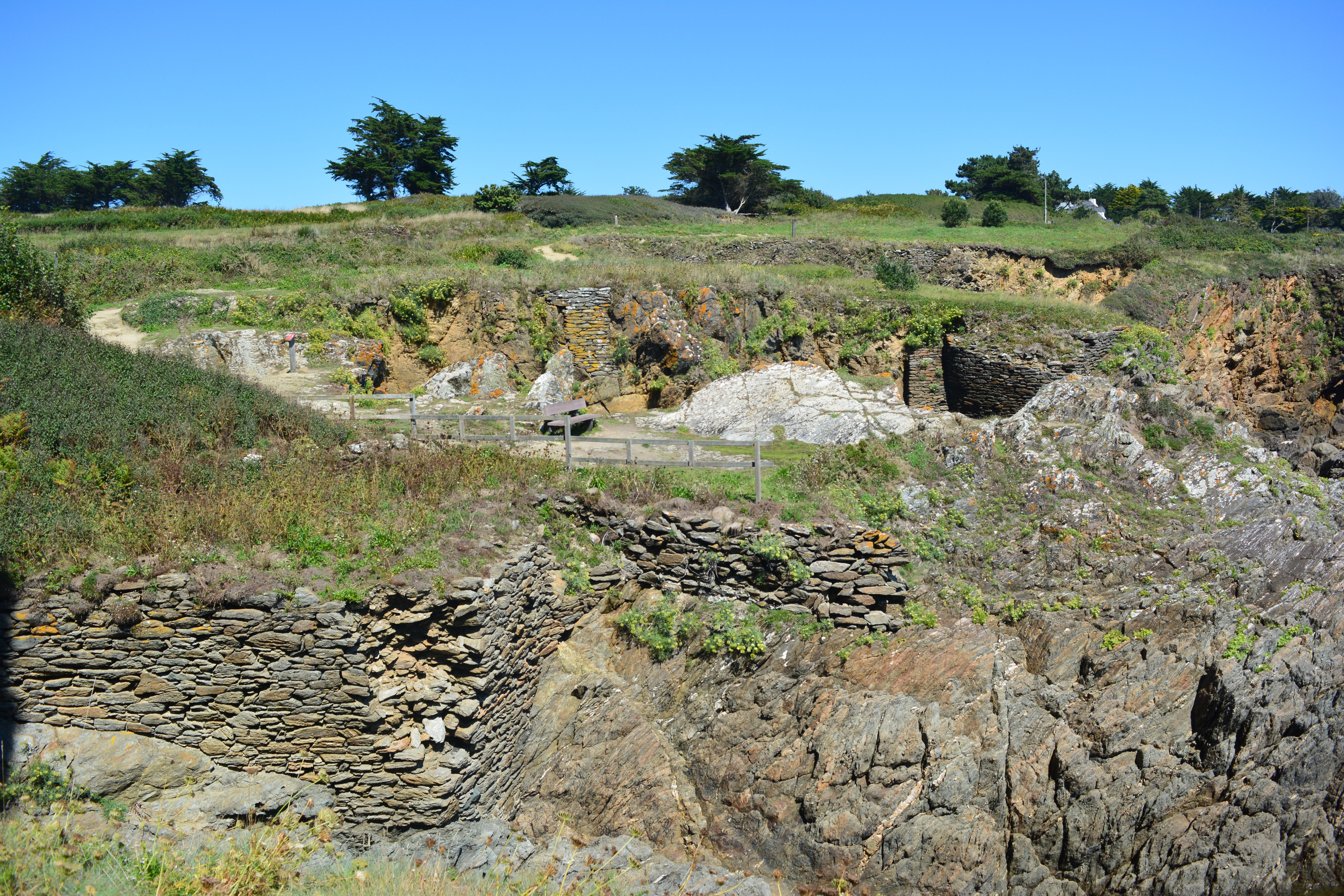 Murs de soutènement en pierre sèche qui permettaient d'installer des kroug et de faire sécher le goémon sur la commune de Clohars-Carnoët dans le Finistère sudImmatriculation