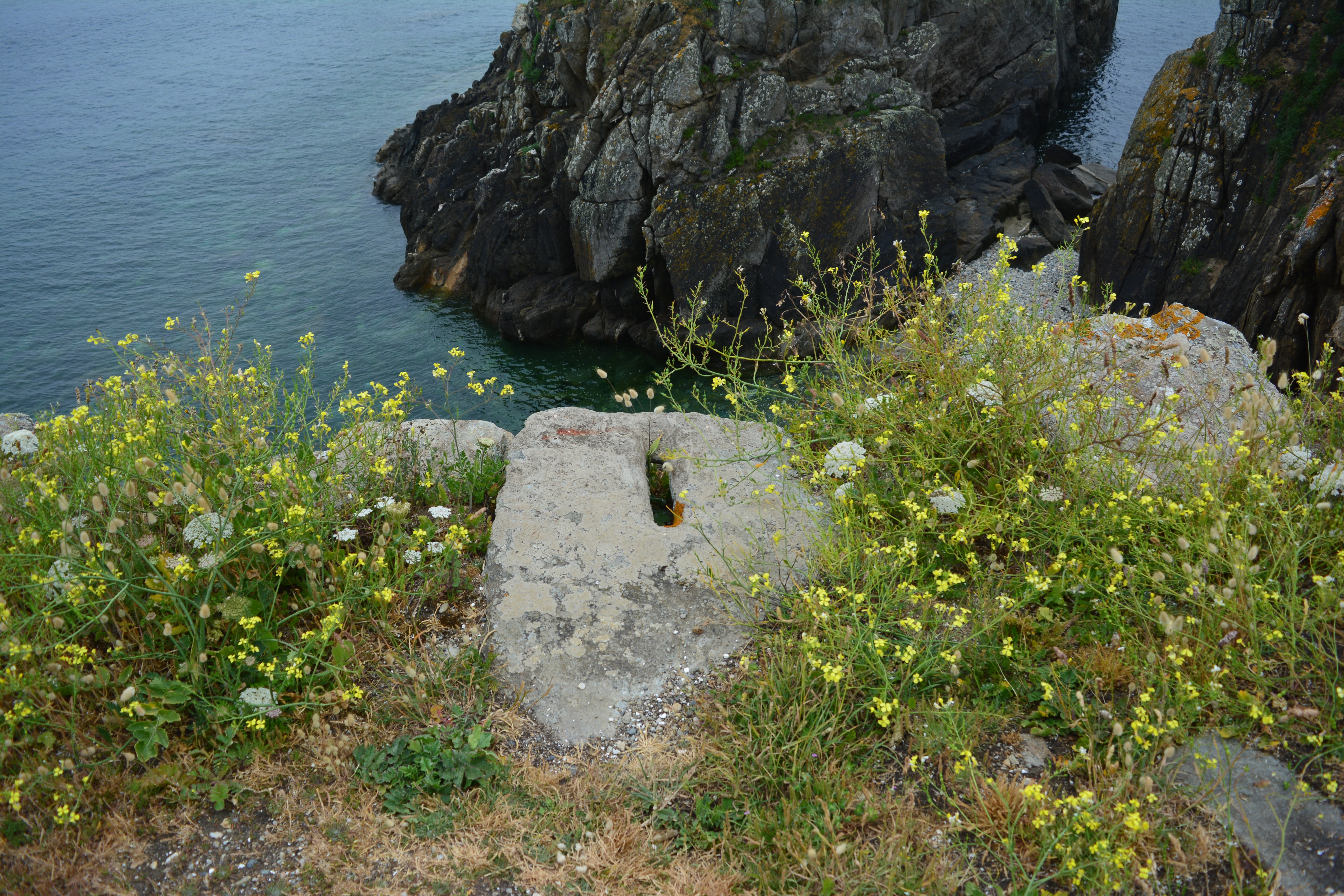 Vue du dessus d'une pierre percée permettant l'installation de la pièce en bois du daviedImmatriculation