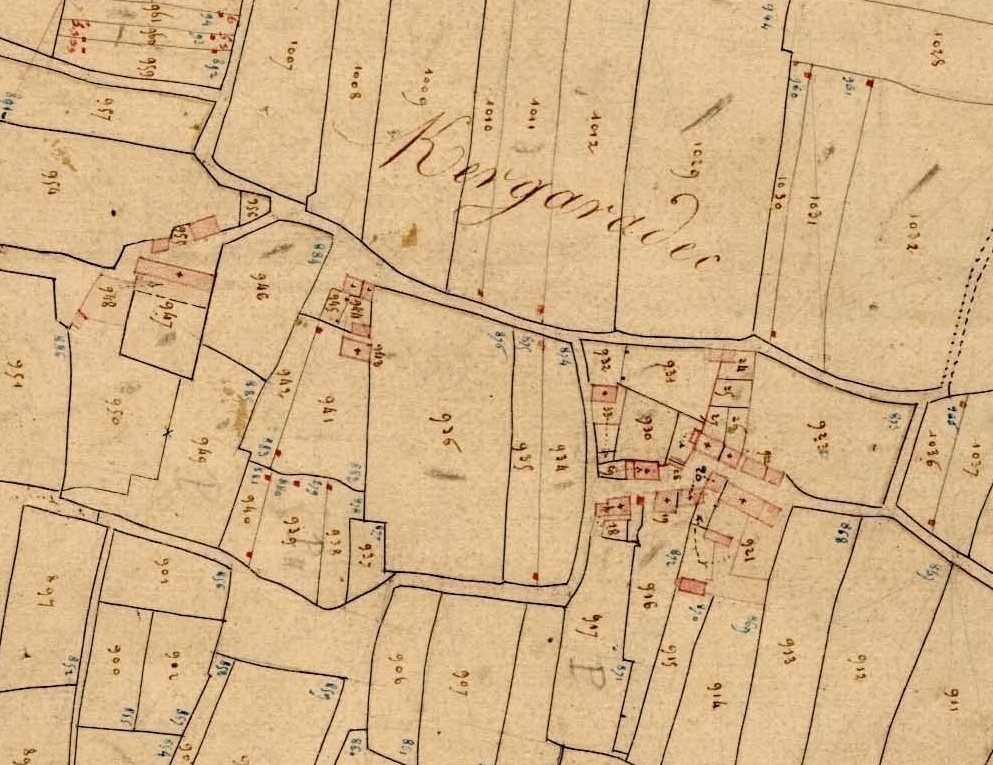 Village de Kergaradec, cadastre ancien de la commune de Cléden-Cap-Sizun, 1837.Immatriculation