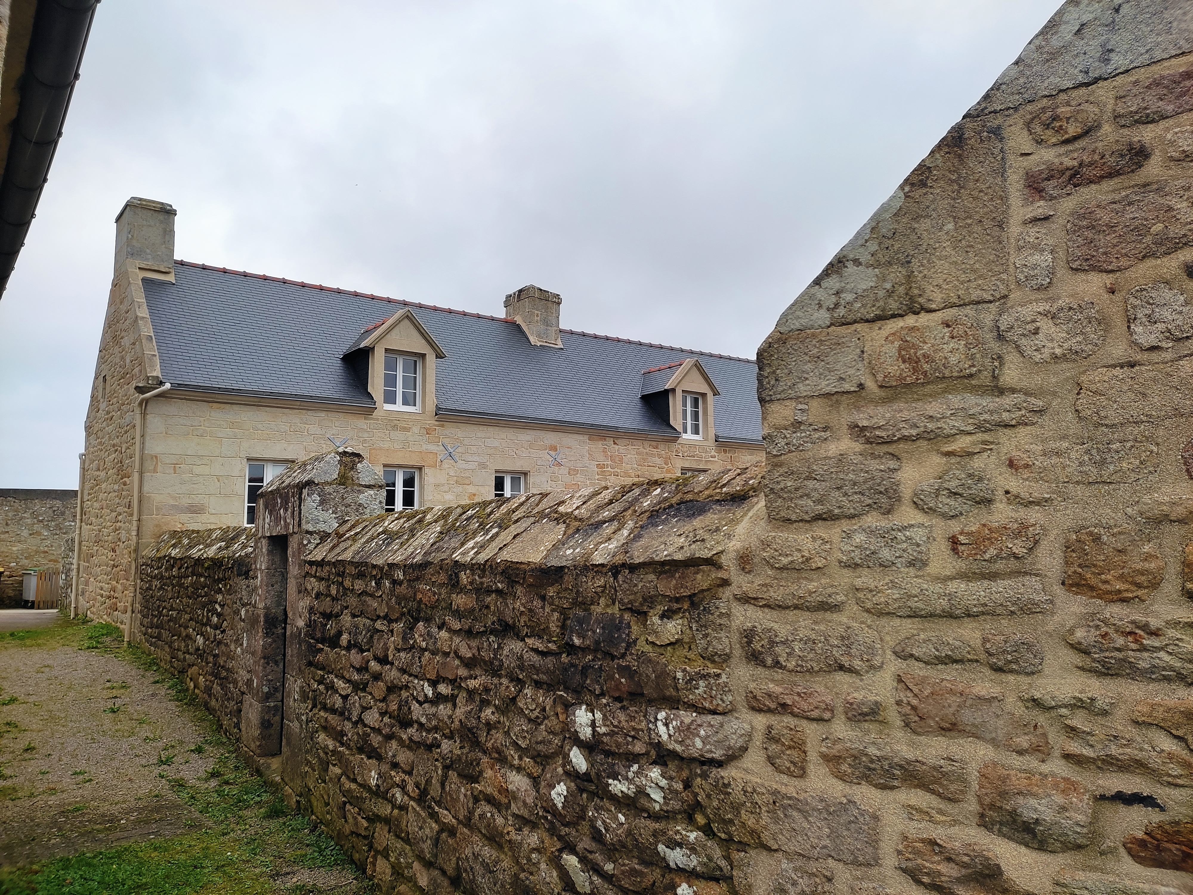 Côté ouest : bâtiments et mur d'enclos. (2023)Immatriculation