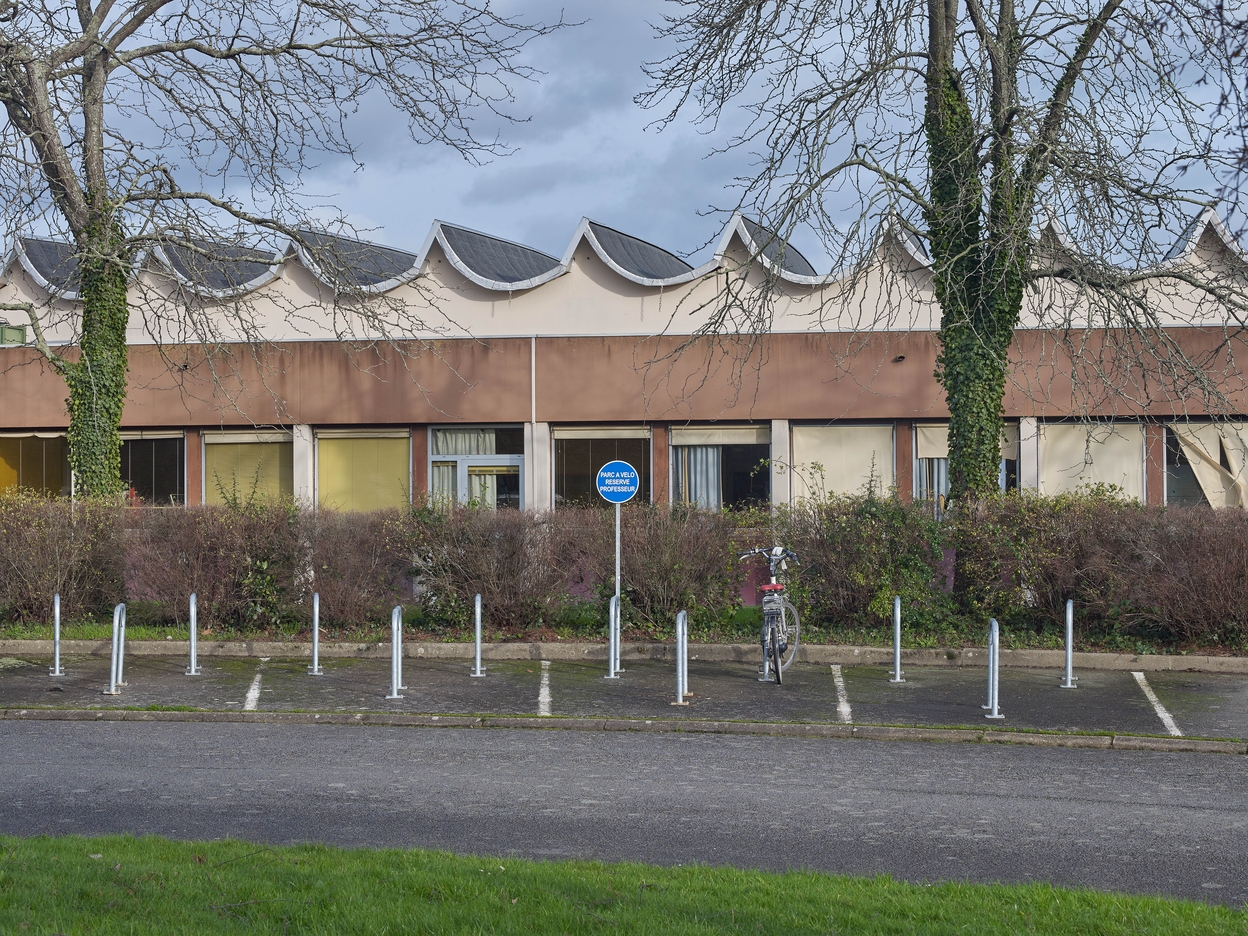 Détail de la façade ouest des ateliers. Roger Besnard, architecte, 1973.Immatriculation