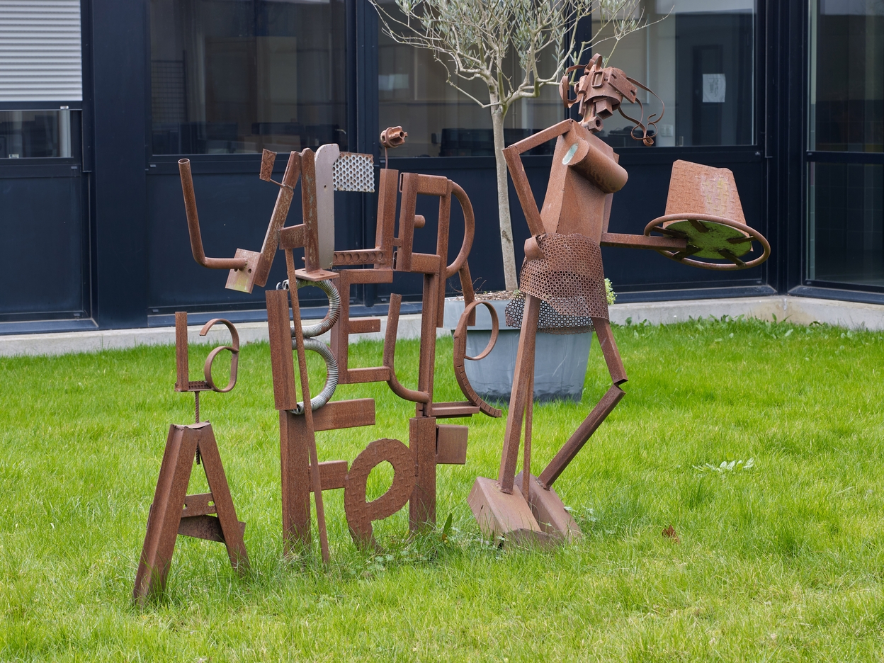 'L'Atelier la belle à fer', sculpture métallique dans le patio entre les ateliers et le l'externat (bâtiment D)Immatriculation