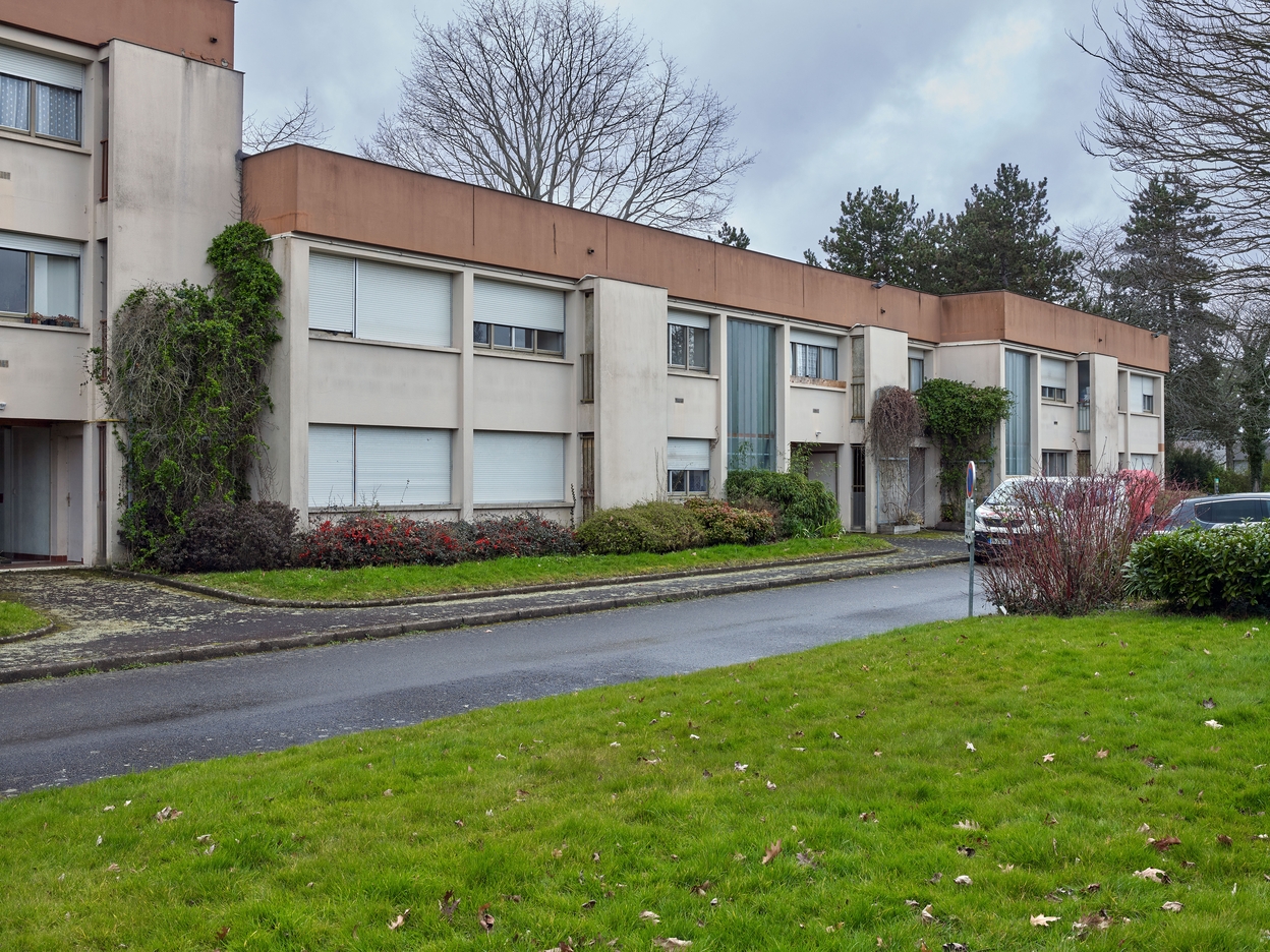 Façade est des logements de fonction : détail sur la partie nord. Roger Besnard, architecte, 1973-1974.Immatriculation