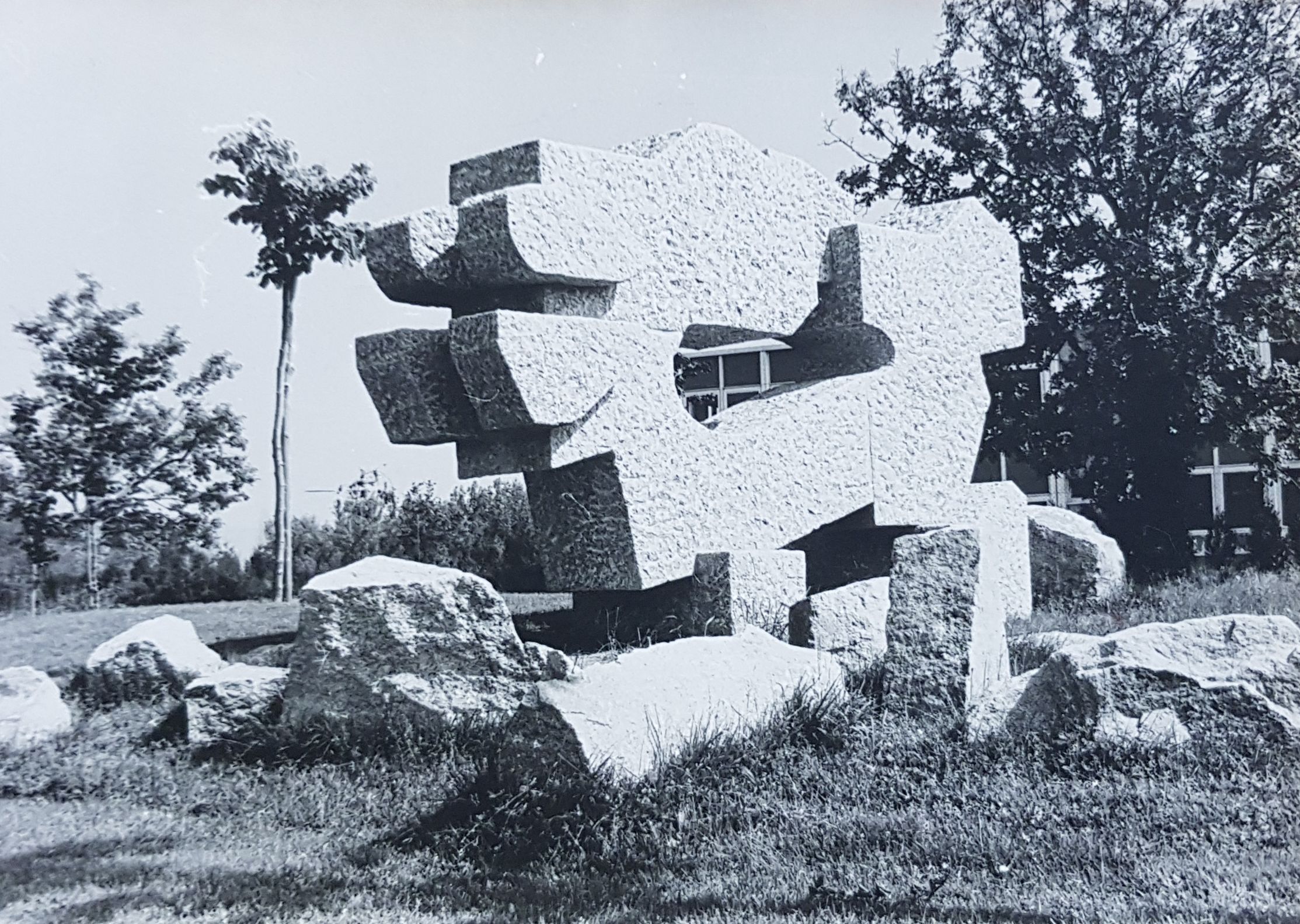 Sculpture de Francis Pellerin, 1979, dans ses état et implantation d'origine.Immatriculation