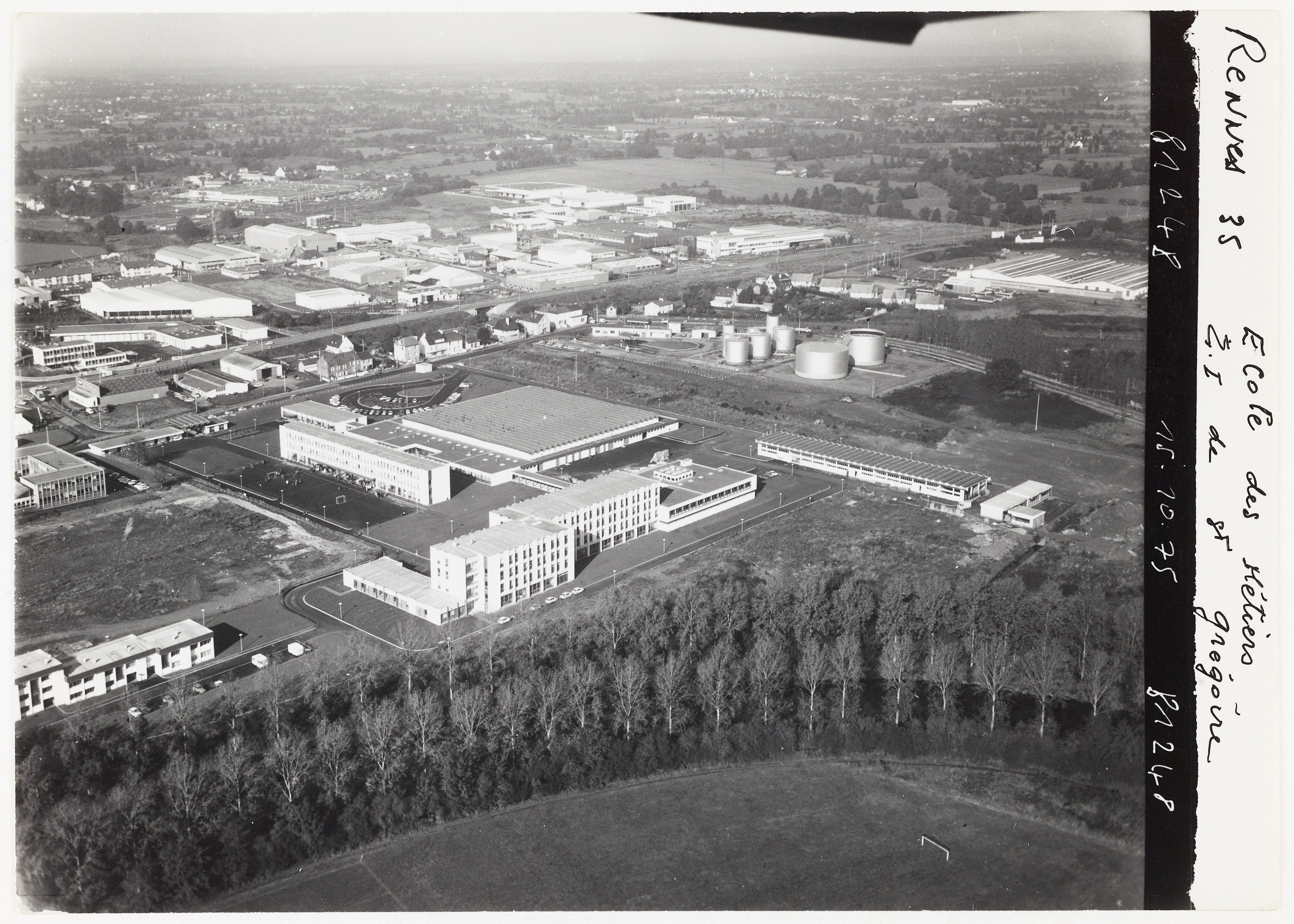 Vue aérienne d'ensemble, prise du sud-est, le 15 octobre 1975.Immatriculation