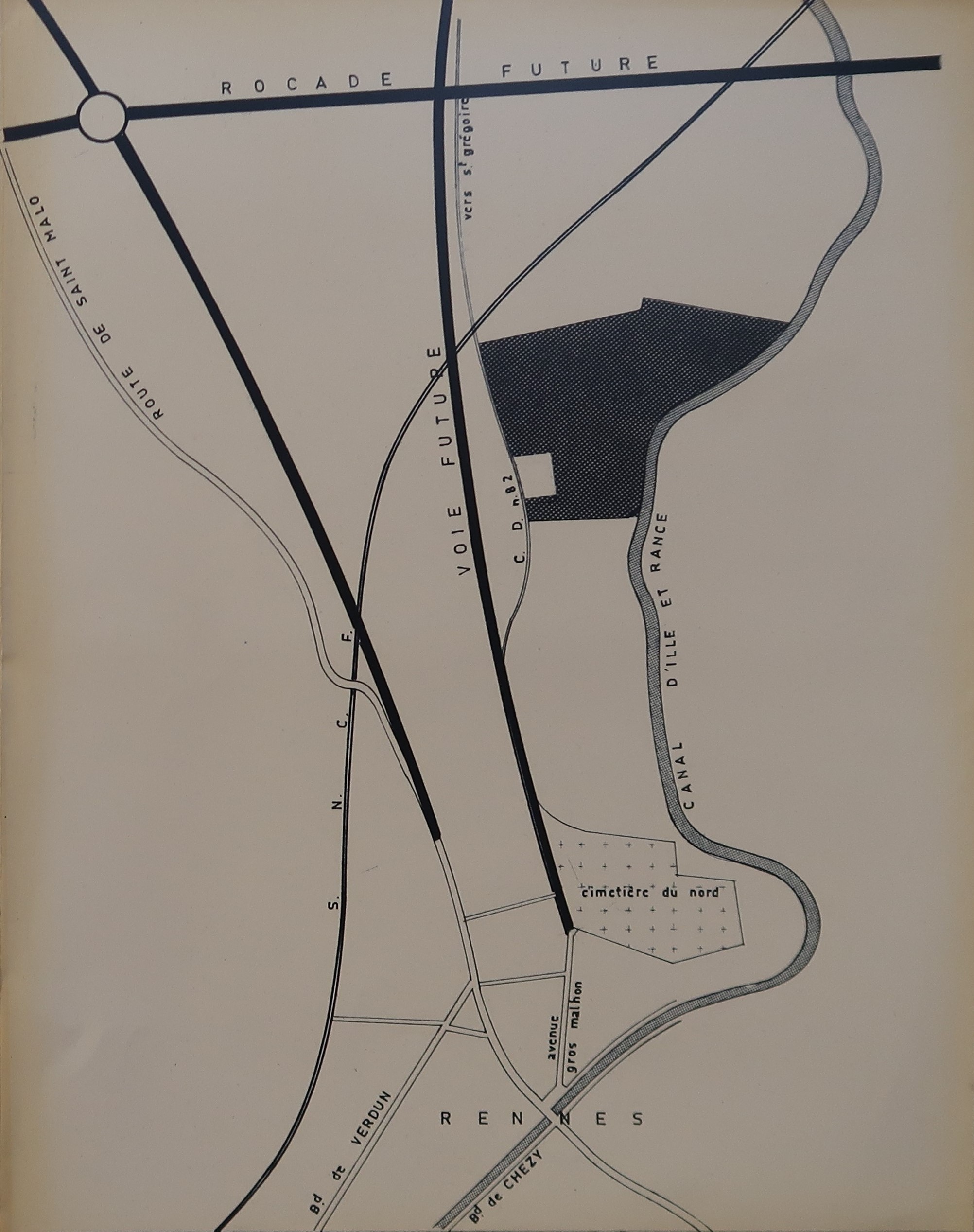 Le plan de situation (Roger Besnard, architecte, 1969), montre bien que le lycée s'implante dans un quartier en cours d'aménagement, notamment en matière d'axes de circulation.Immatriculation