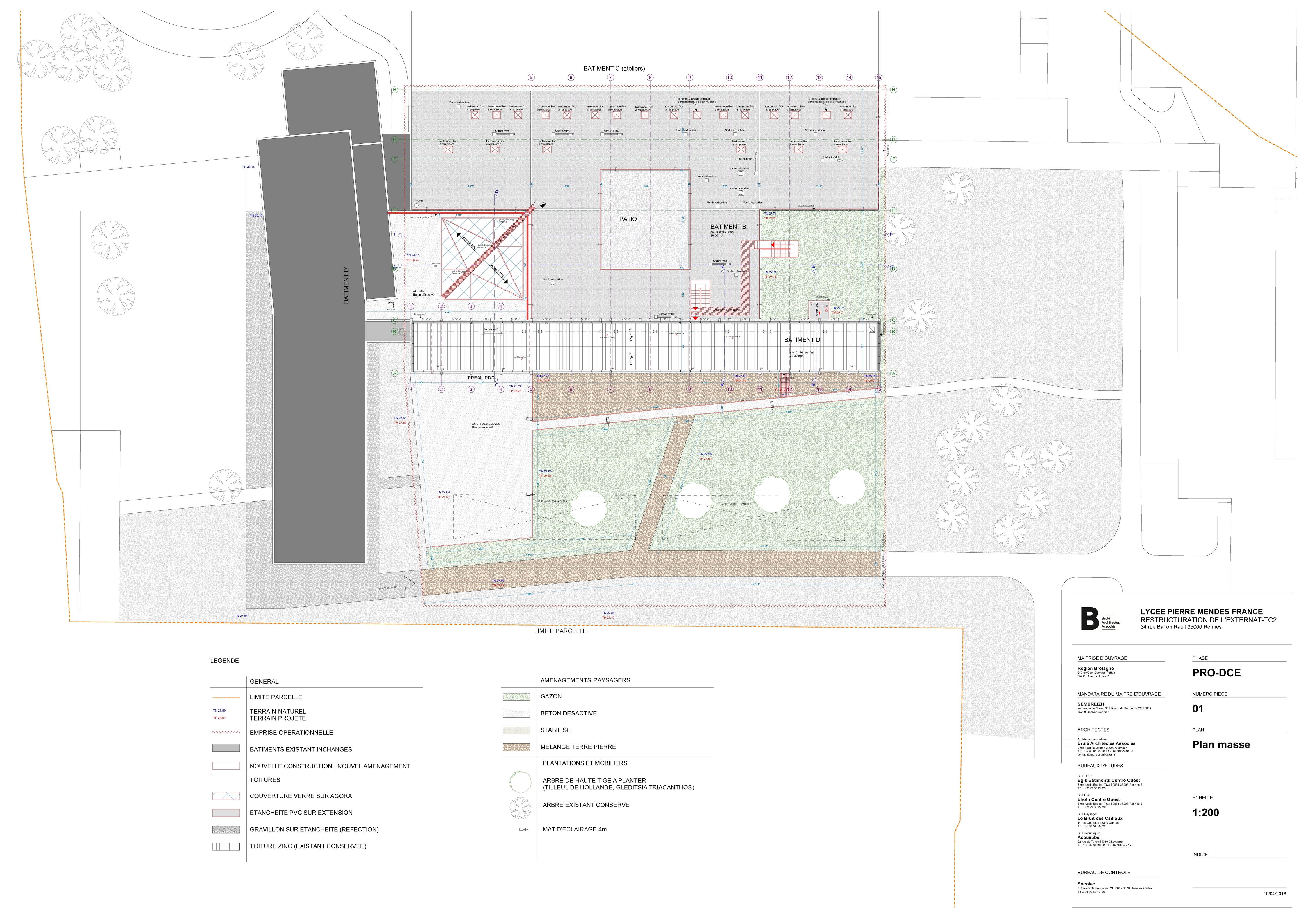 Plan masse de l'extension restructuration, Pierre Brulé, architecte, 2018.Immatriculation
