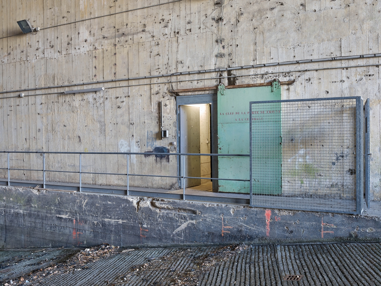 Vue de la porte d'accès depuis l'alvéole du slipway (porte coulissante)Immatriculation