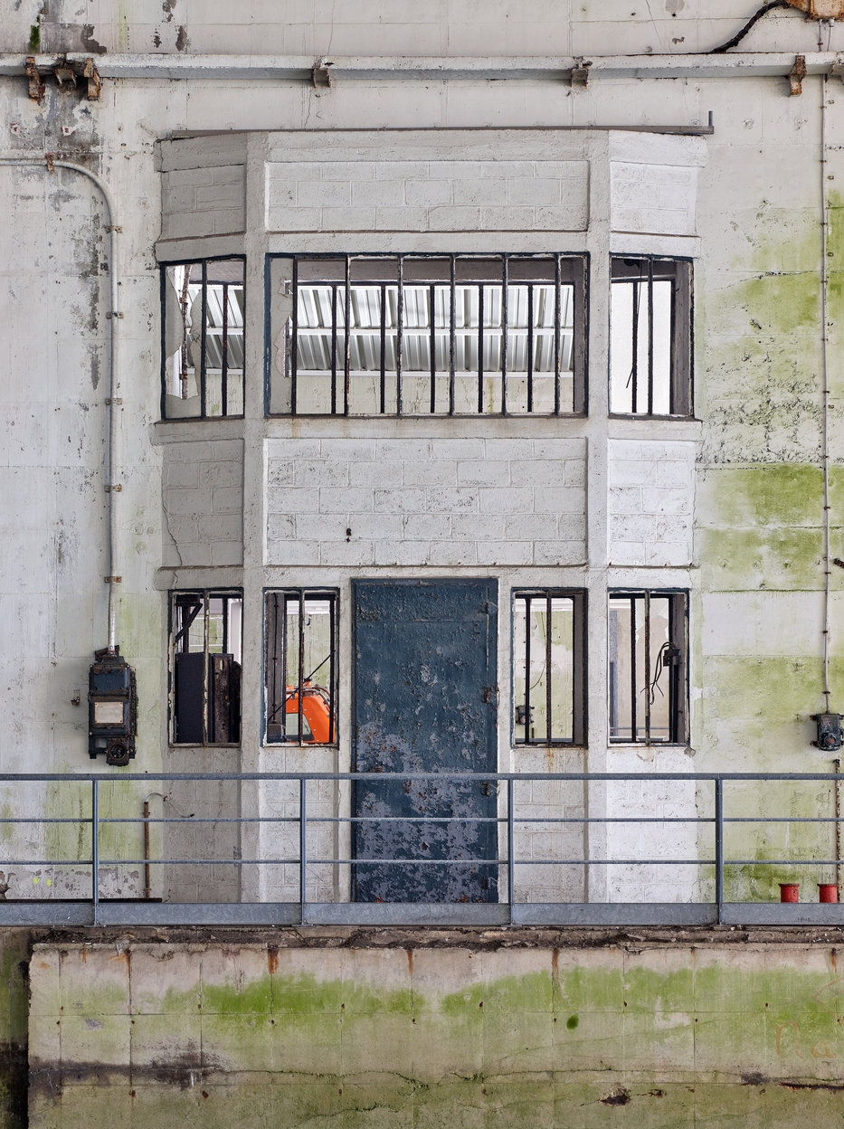 Vue de la salle des pompes aménagée dans l'épaisseur du mur de refend entre les alvéoles D et E. Au premier plan, le quai n° 19Immatriculation