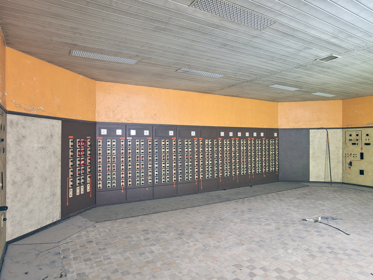 Vue de la salle de commande de la centrale électrique : tableaux (fusibles ?)Immatriculation