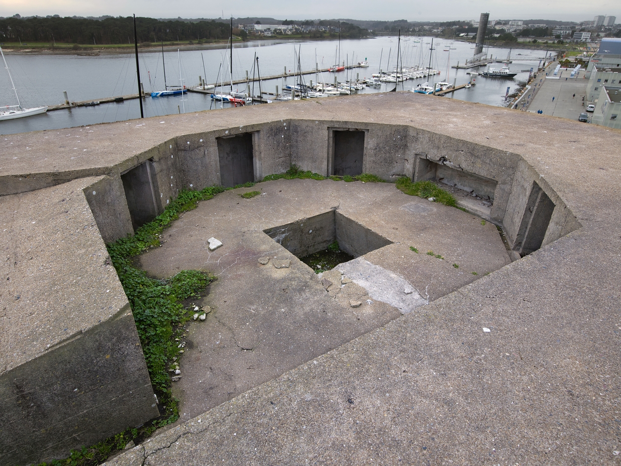 Bunker-cuves pour deux canons antiaériens quadruples de 2 cm et abri dits Tour de Flak, dalle de couverture, bunker K1 (Lorient),