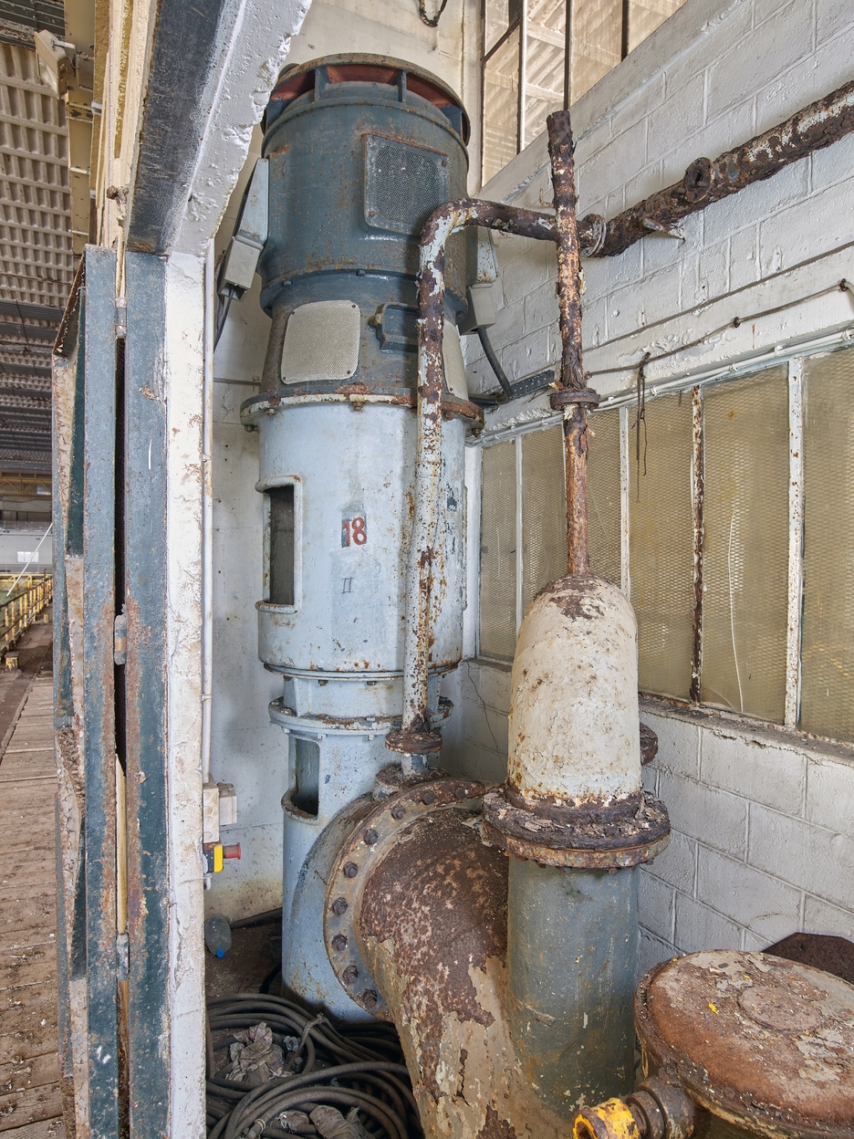 Vue du local des pompes sud situé entre les alvéoles A et B : pompe avec son système de tuyauterieImmatriculation