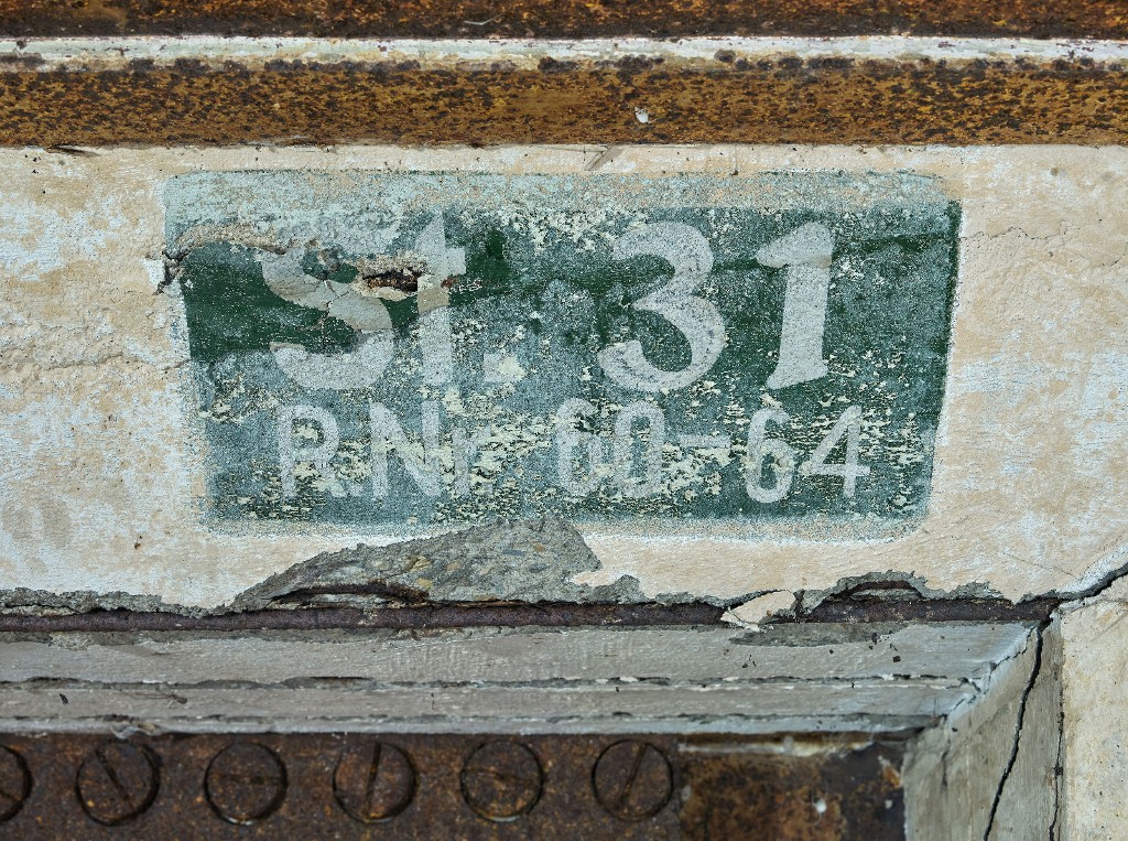 Vue de la chambre de combat nord : l'un des deux cartouches avec marquage. On peut lire : St. 31 ; R.Nr. 60-64Immatriculation