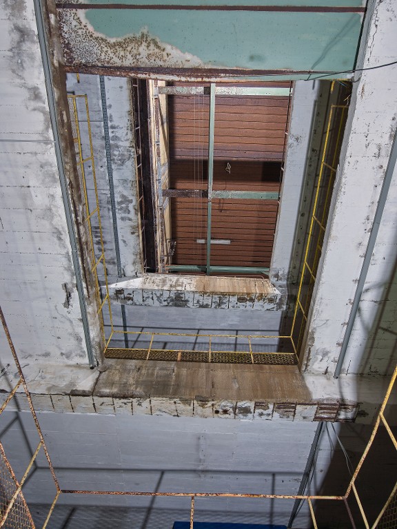Vue de l'extension nord-ouest : puits du monte-charge depuis le rez-de-chausséeImmatriculation