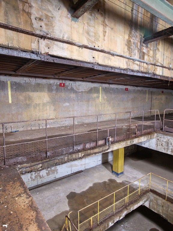 Vue de l'extension nord-ouest : puits du monte-charge depuis le troisième étageImmatriculation