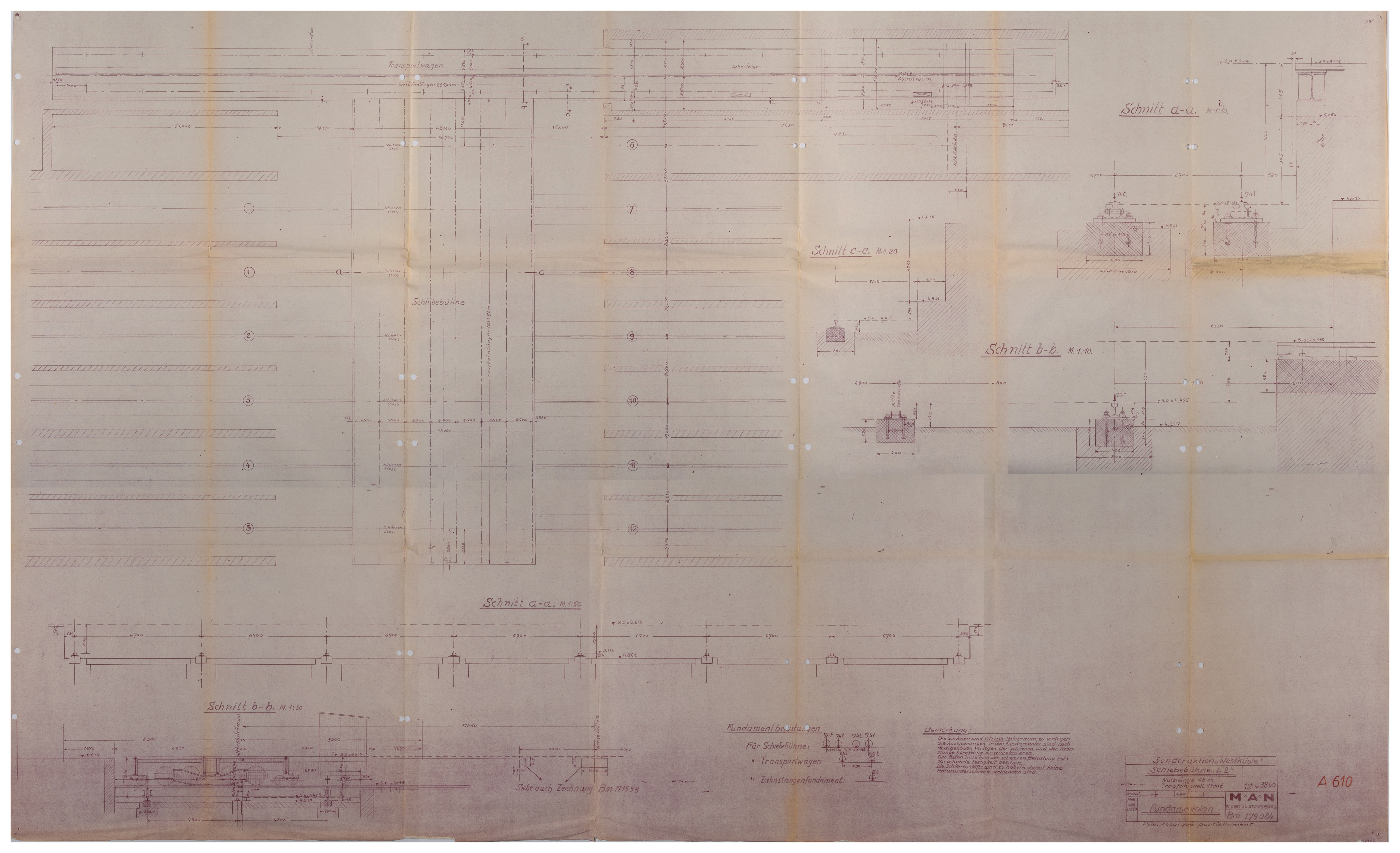 Plan de l'aire de translation, MAN Werk Gustavsburg, plan recalqué partiellement, 1945, A610.