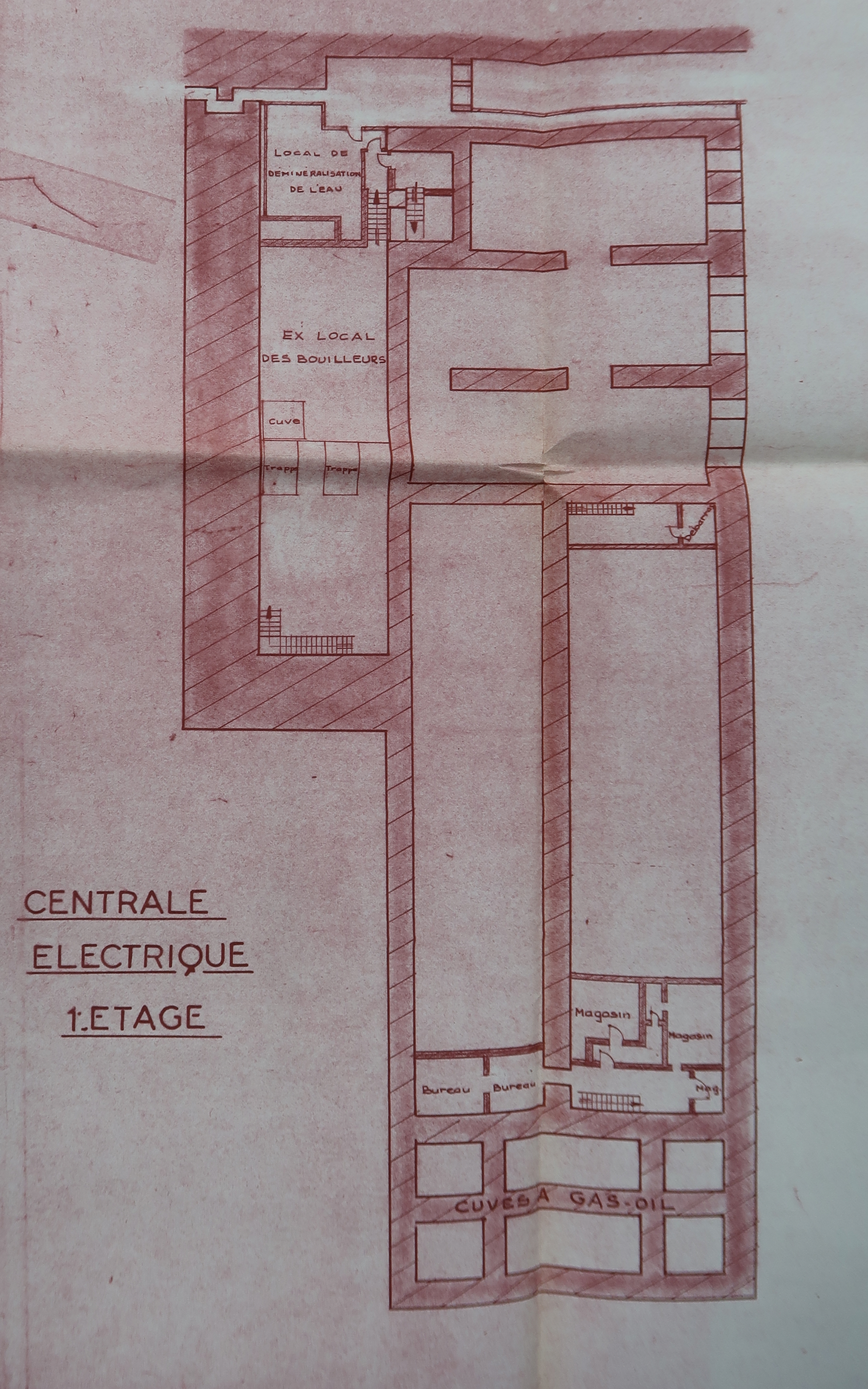 Extrait du plan du bloc n° 1, distribution des locaux : premier étage de la centrale électrique, plan K n° 780A, 28 décembre 1965, mis à jour du 11 avril 1979 (Service Historique de la Défense de Lorient)Immatriculation