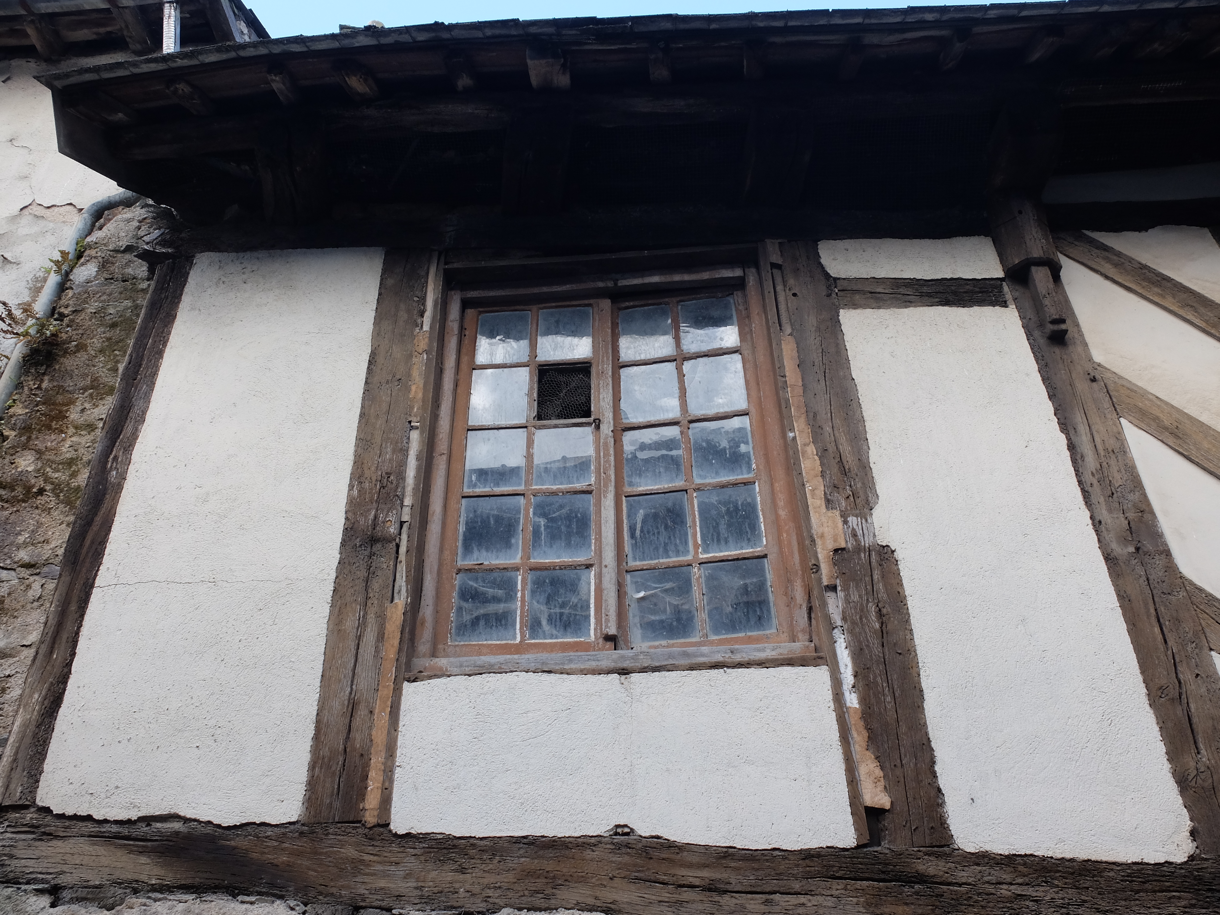 Maison à gauche. Détails du premier étage en pan de boisImmatriculation