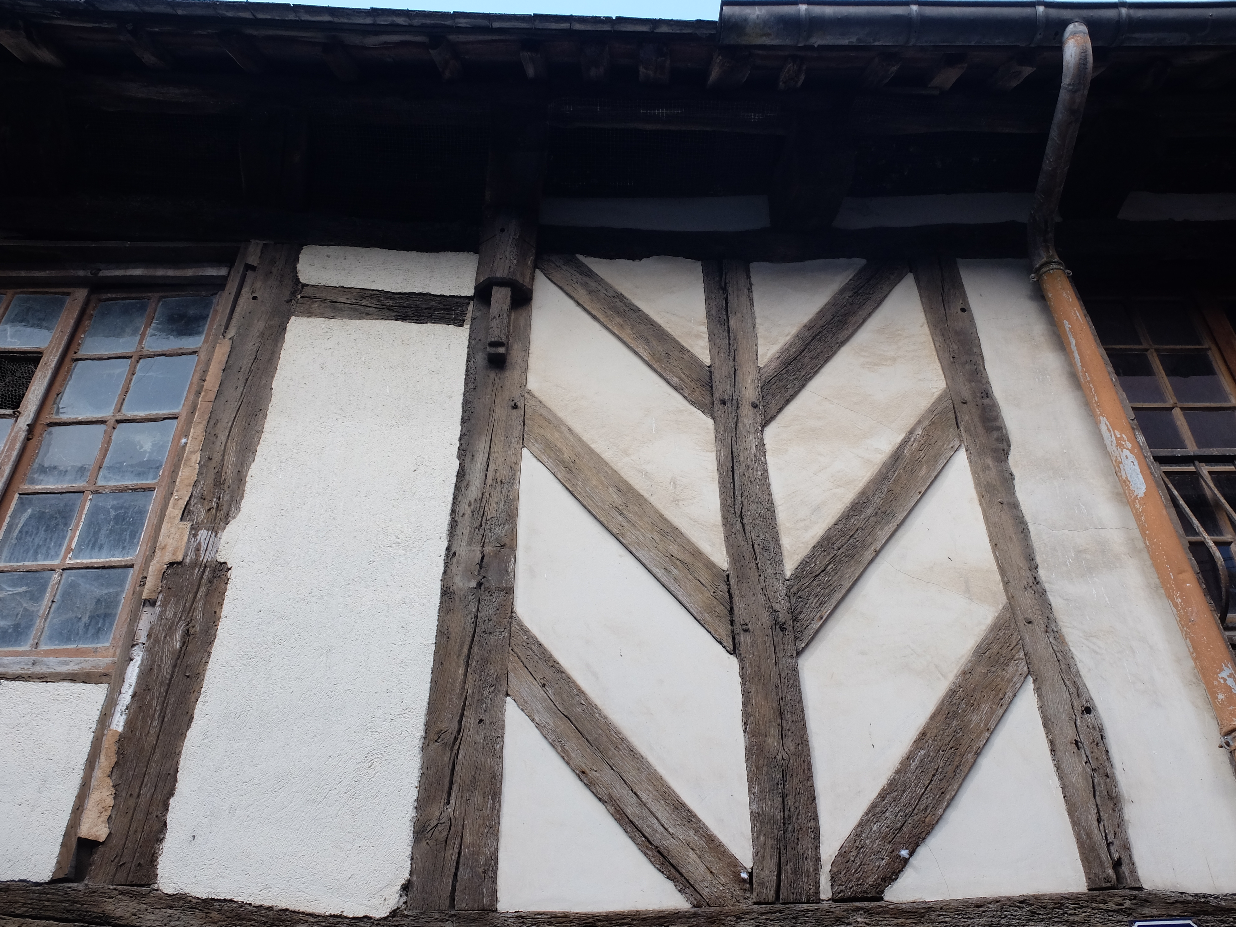 Maison à gauche. Détails du premier étage en pan de boisImmatriculation