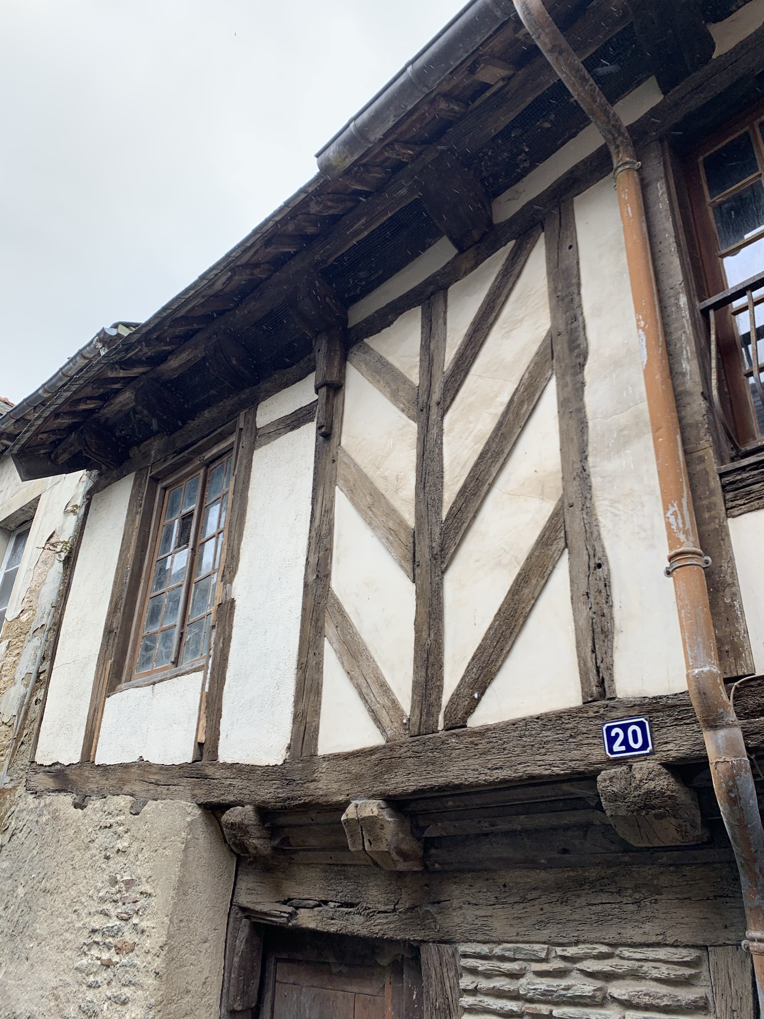 Maison à gauche. Premier étage en pan de boisImmatriculation