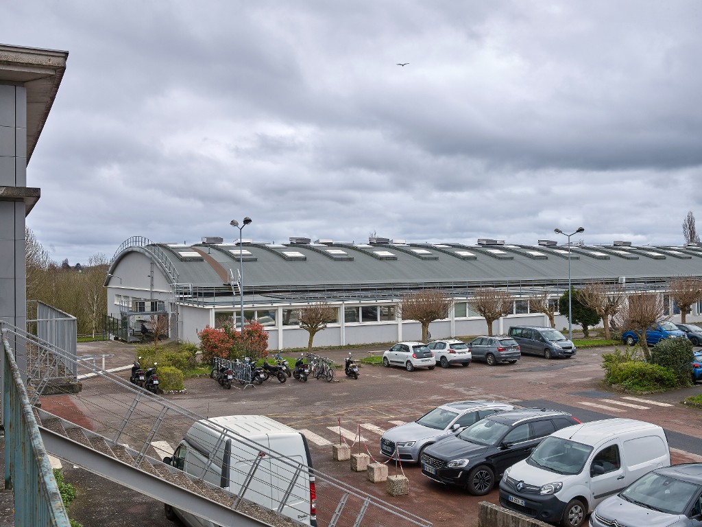 Vue d'ensemble des ateliers prise de l'ouest-nord ouest. Partrice SImon, architecte, 1966.Immatriculation