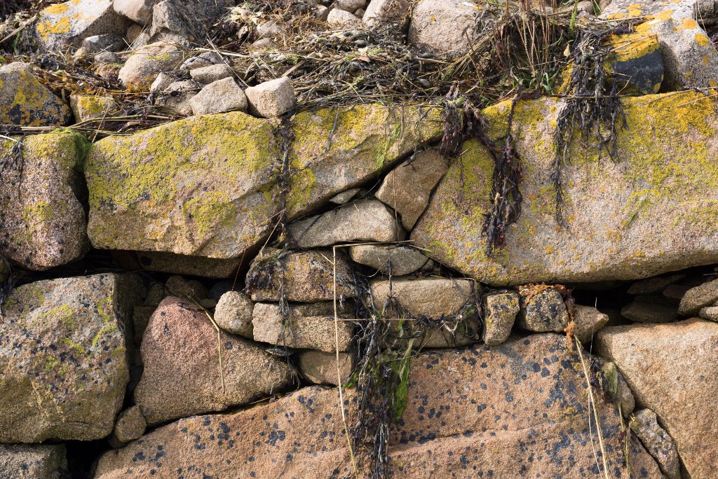 Détail des moellons et des pierres du parement du mur de soutènement au fond de l'anse de PellinecImmatriculation