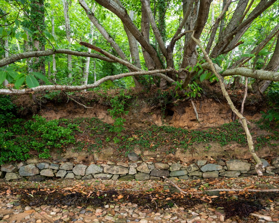 Mur de soutènement retenant les terres d'une forêt sur la rive ouest de la baie de l'EnferImmatriculation