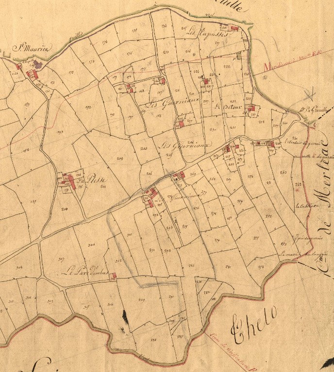 La Plesse et Les Guerniaux en 1828. Extrait du plan du cadastre ancien, section C1 (Archives départementales des Côtes-d'Armor, série 3 P 265)Immatriculation