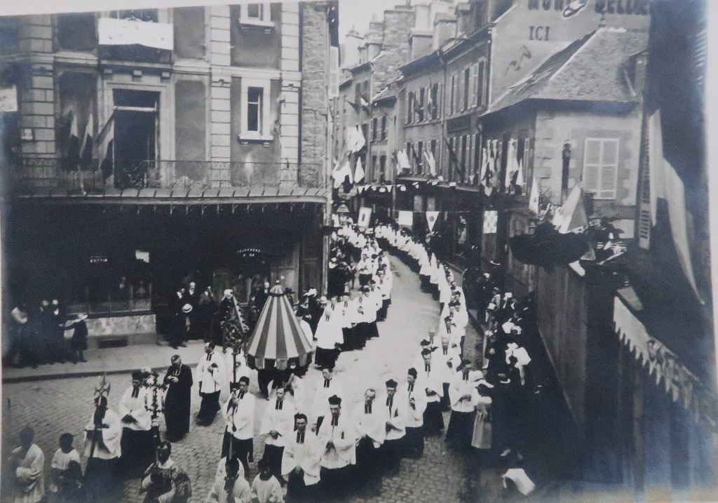 Procession du tintinnabule et de l'ombellino basilicaux dans les rues de Saint-Brieuc, photographie, après 1903
