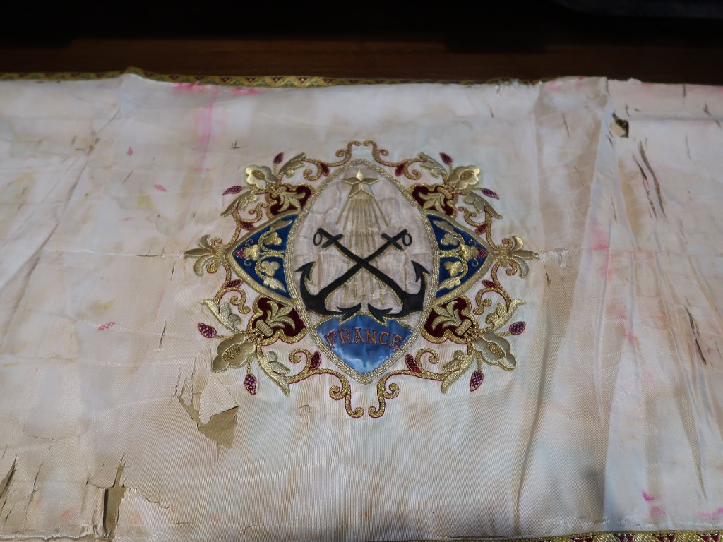 Détail du voile huméral : emblème de Notre-Dame d'EspéranceImmatriculation
