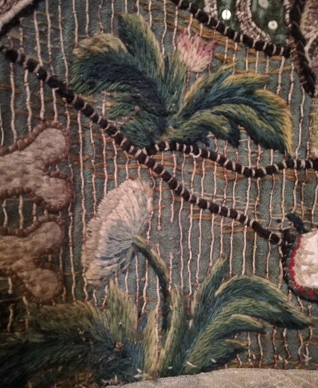 Détail : broderie florale en laine - Face CrucifixionImmatriculation
