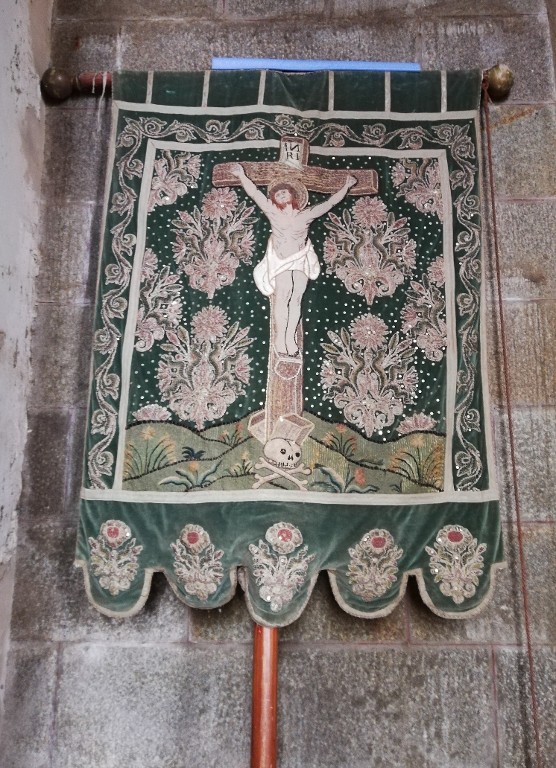 Bannière : Donation du Rosaire, Christ en Croix, église Notre-Dame (Plouëc-du-Trieux),