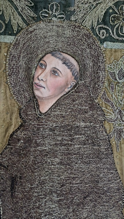 Détail : saint Maudez - broderie et peintureImmatriculation