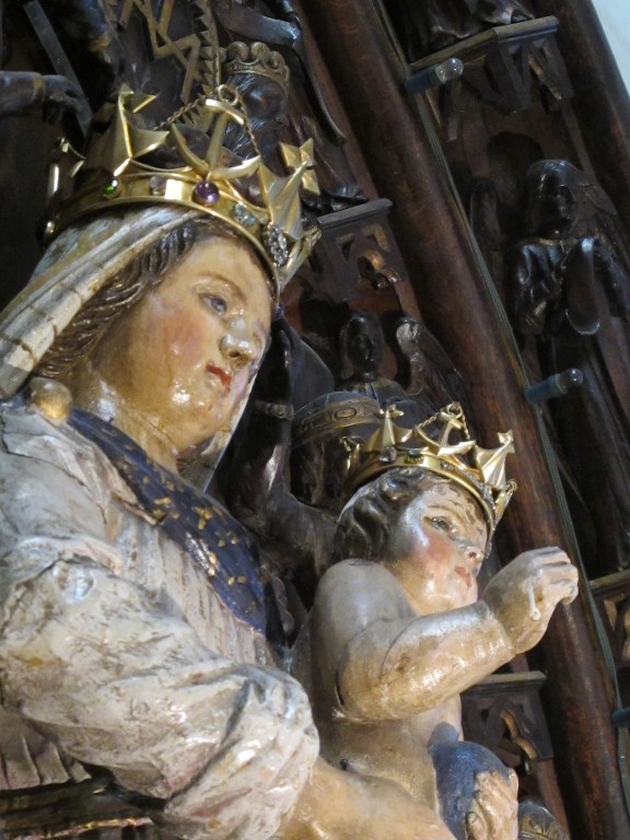 Vierge à l'Enfant dite Notre-Dame de Bonne Nouvelle, détail des visages de la Vierge et de l'Enfant avec leurs couronnes doréesImmatriculation