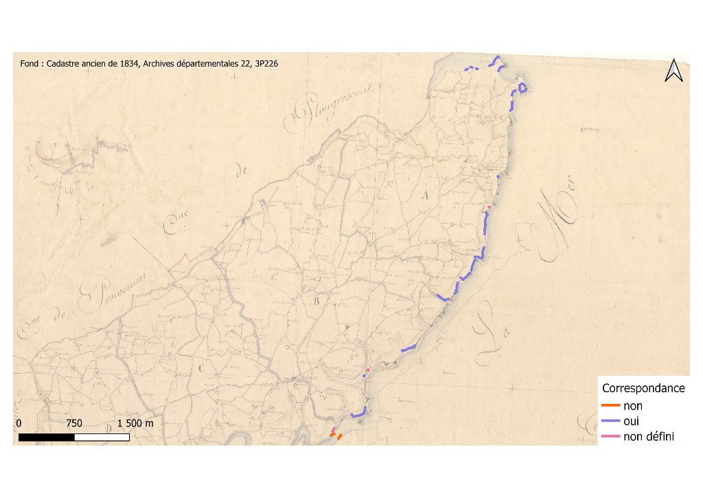 Correspondance des constructions littorales en pierre sèche de Plouguiel avec le cadastre de 1834Immatriculation