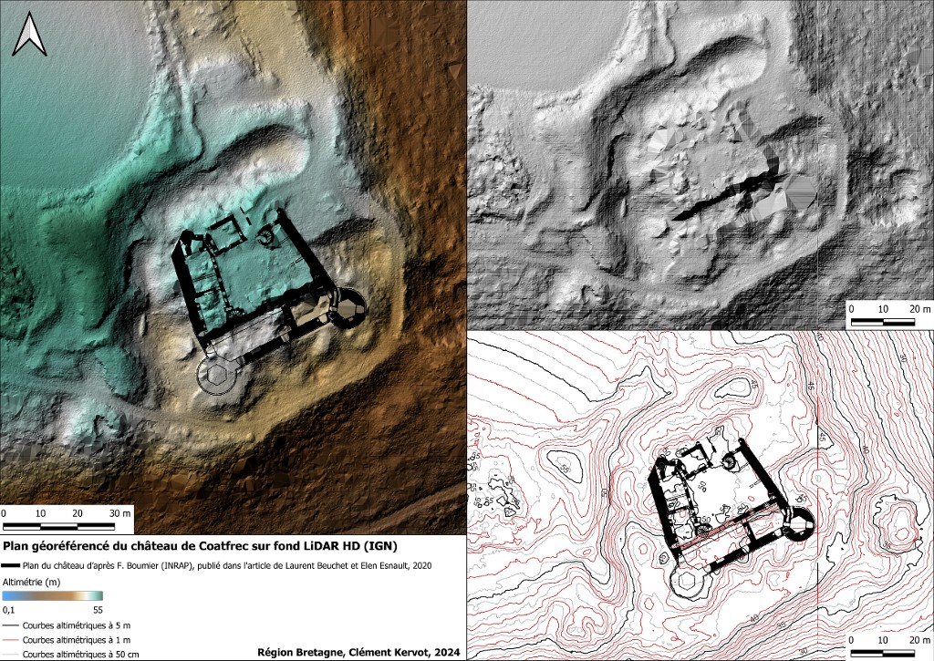 Plan du château de Coatfrec sur fond Lidar HD de l'Institut national de l'information géographique et forestière (plan du château d'après Frédéric Boumier, Institut national de recherches archéologiques préventives)Immatriculation