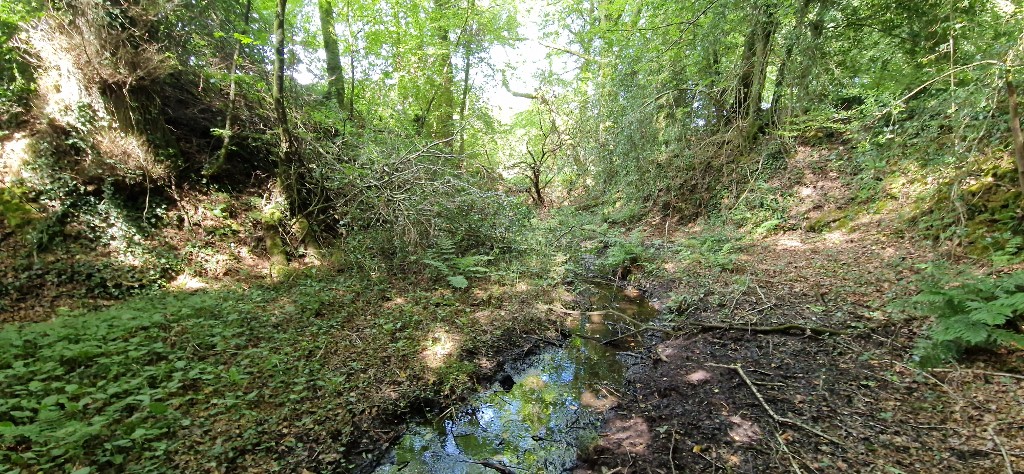 Vue du fossé au sud-est. Un ruisselet y couleImmatriculation