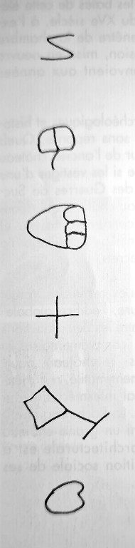 Relevé des marques de tâcherons (d'après Christel Douard, 1990)Immatriculation
