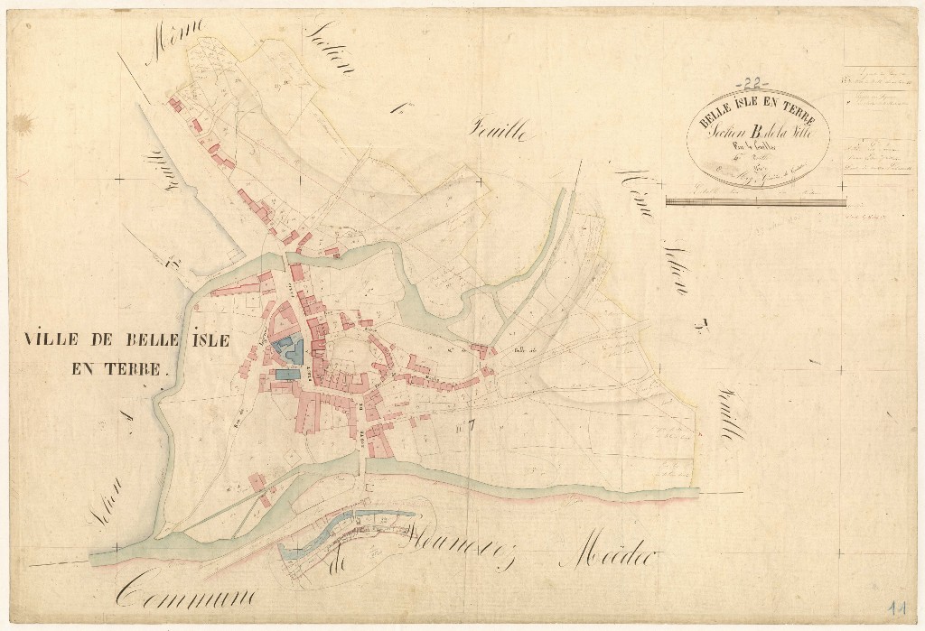 Extrait du cadastre parcellaire de Belle-Isle-en-Terre, section B dite de la ville, 1838Immatriculation