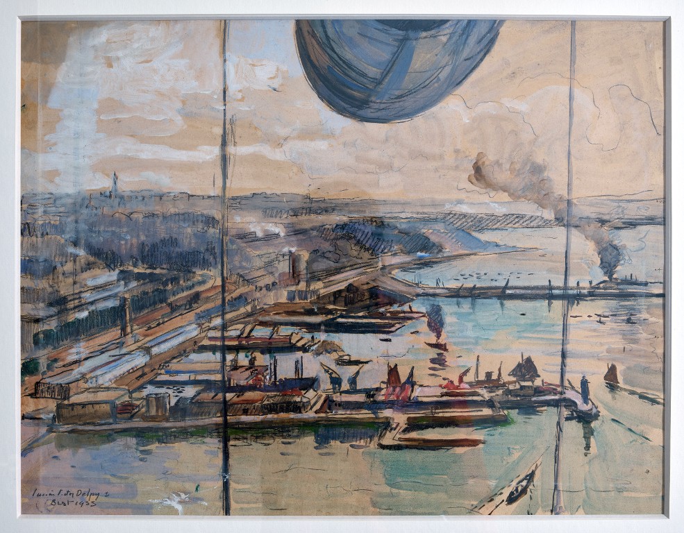 Dessin préparatoire : Le port de commerce de Brest, gouache et encre, Lucien-Victor Delpy, 1933Immatriculation