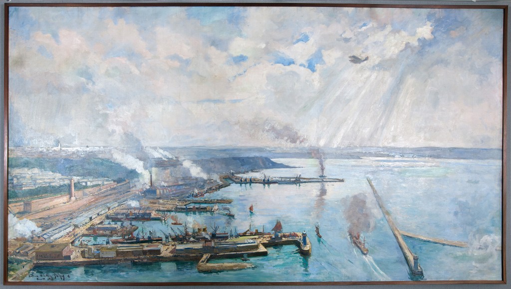 Tableau et dessin, port de commerce de Brest de Lucien-Victor Delpy,